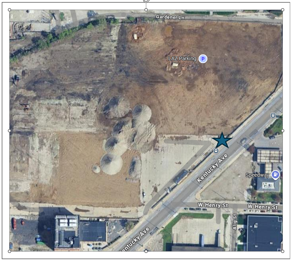 Note: This Lot is gravel based. Kentucky Avenue 402 is located across the street from a Speedway gas station, by a three-way interesction (Kentucky Avenue, South West Street, and West South Street). The entrance to the Lot is on Kentucky Avenue. On game day, look for the large "Parking" sign. See map below. The building in the google map no longer exists, the Lot is open space.